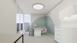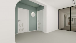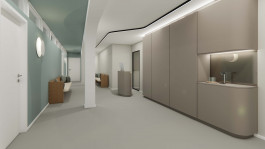 Unsere neue Praxis bietet modernste Ausstattung mit 9 Behandlungszimmern, 3 OP-Räumen, 3 Laserräumen, einer PDT-Kabine, 2 Kosmetikräume, einem Labor und einem Screening-Raum mit IntelliStudio. Für das Team steht ein 30m² großer Aufenthaltsraum mit Küche und Zugang zur Loggia zur Verfügung. Der Eingangsbereich ist hell, weitläufig und flexibel nutzbar. Daran schließt sich der Wartebereich an, der über eine mobile Trennwand flexibel abgetrennt oder geöffnet werden kann.